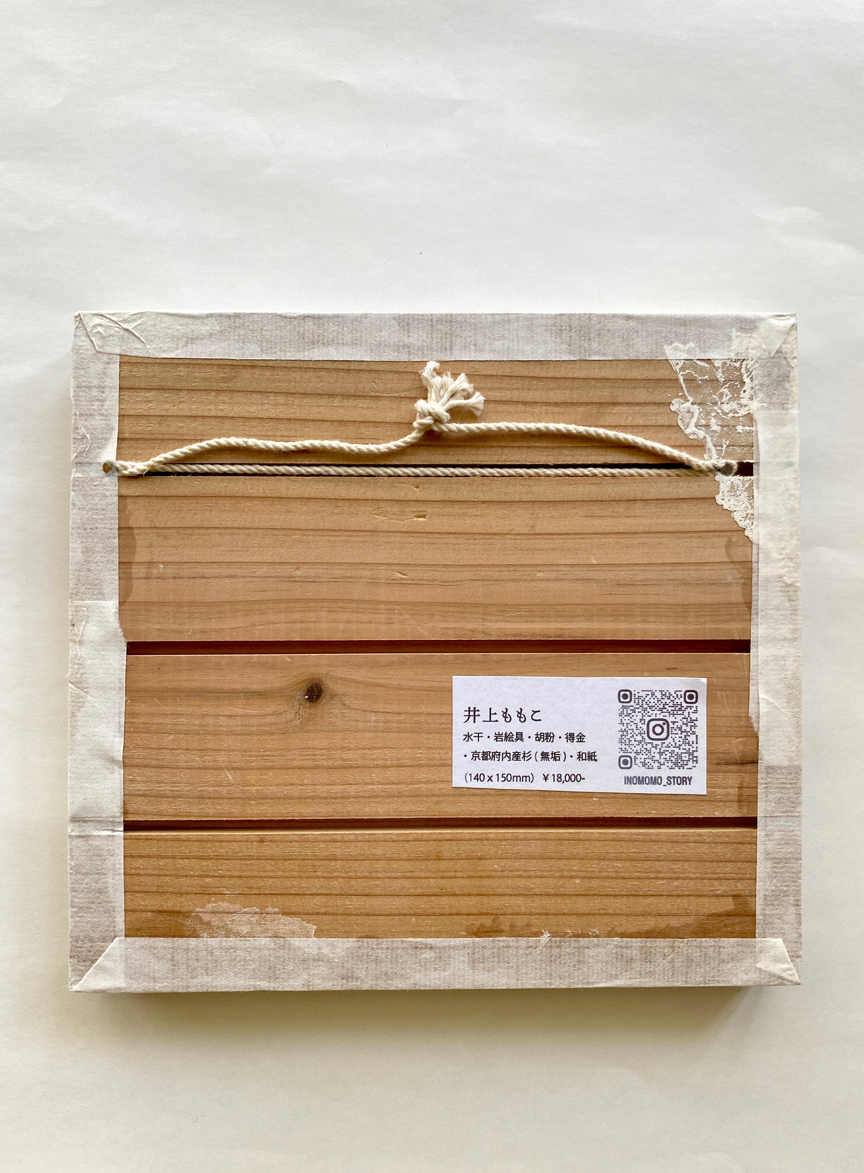岩絵の具の漂うような粒子感や、角度によって表情を変える自然素材の豊かな作品です。