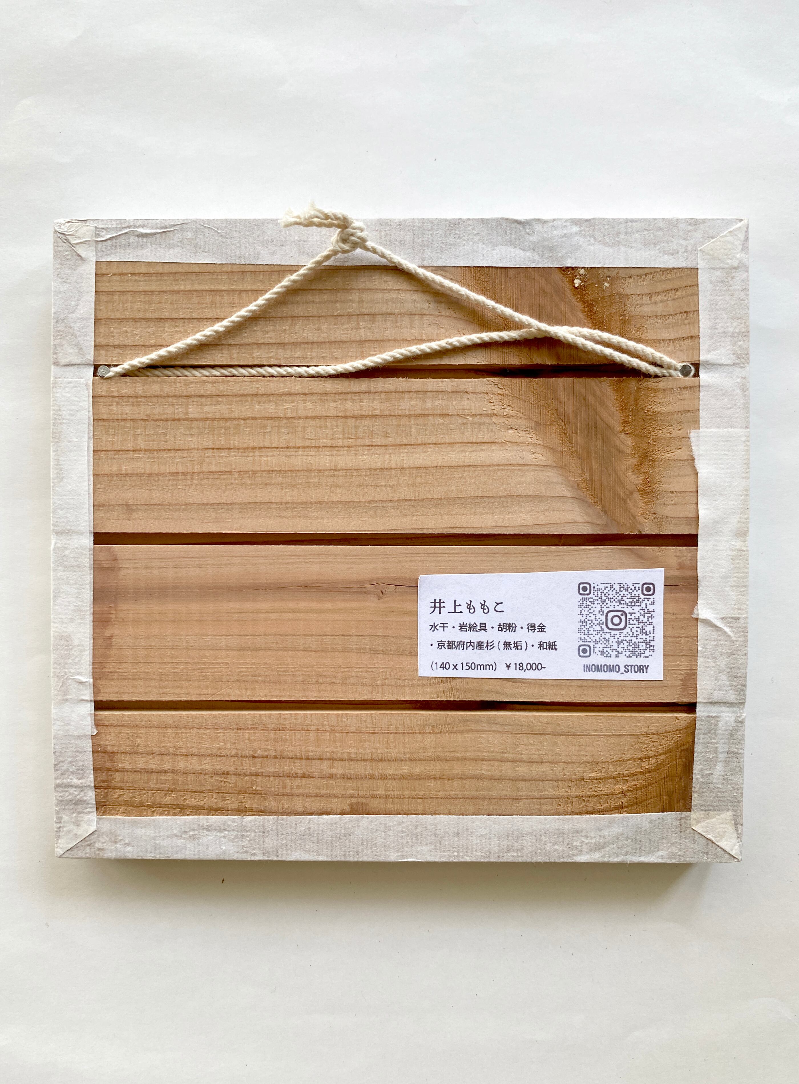 岩絵の具の漂うような粒子感や、角度によって表情を変える自然素材の豊かな作品です。