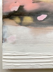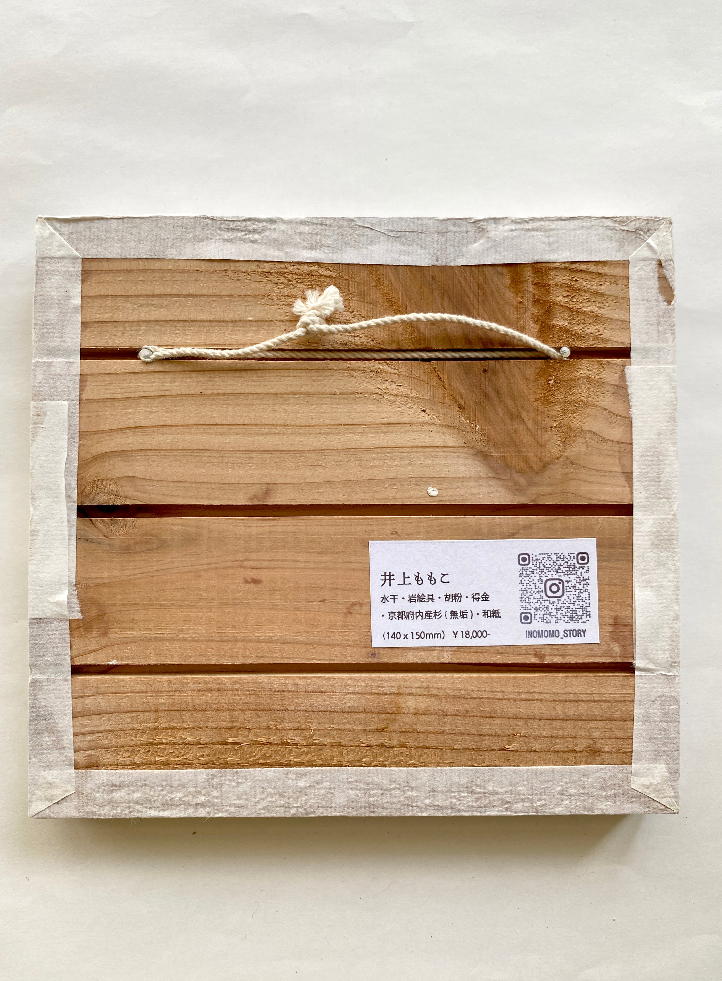 岩絵の具の漂うような粒子感や、角度によって表情を変える自然素材の豊かな作品です。